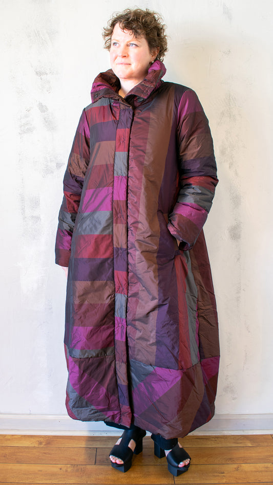 Taffeta Stripe Puffer Long Coat (Multiple Colors)
