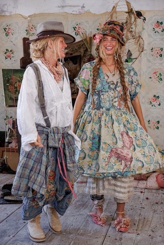 Robin Brown, Magnolia Pearl’s creator and designer, speaks in thread, her mother tongue. Piecing together a life of discarded scraps and torn fragments, Brown built Magnolia Pearl out of sheer hope. Formally launched in 2002, what has grown over the years from these humble beginnings is nothing short of a miracle.
