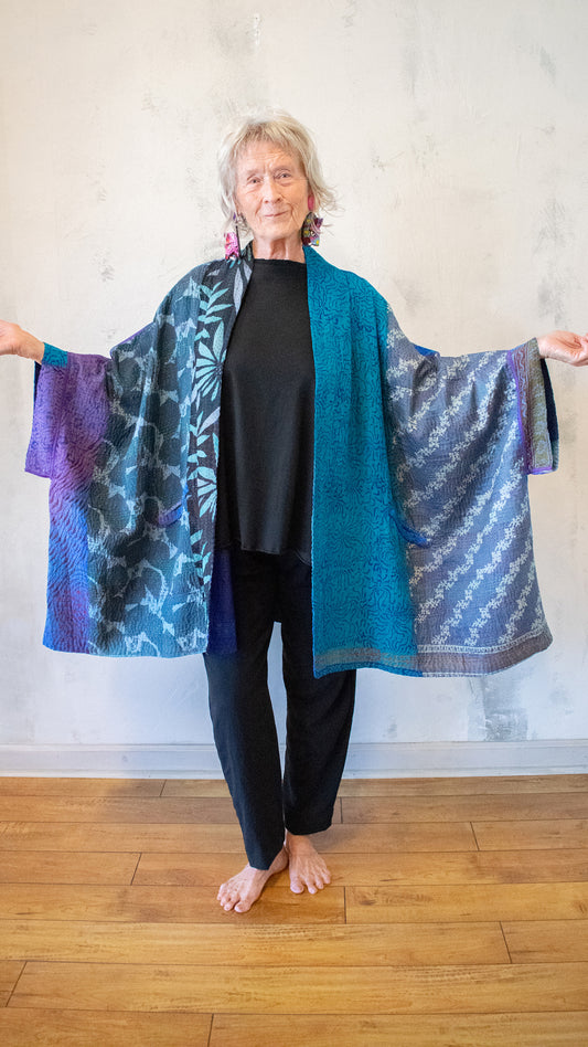 At Gaia, we’re honored to share the exquisite work of Mieko Mintz — garments that blend Japanese tradition with the soulful art of Indian Kantha. Each piece is hand-dyed, hand-stitched, and one-of-a-kind, offering a luxurious balance of comfort, craftsmanship, and cultural harmony. Beautifully made, deeply intentional, and entirely unique — these are wearable works of art you’ll treasure for years to come.