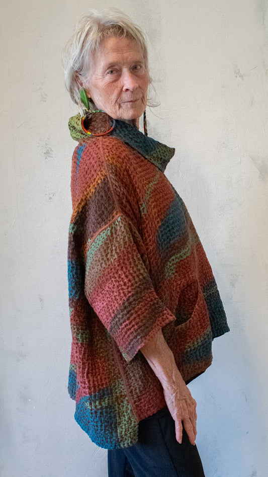 BW3061-CREDA ABSTRACT WAFFLE KANTHA COWL NECK PONCHO