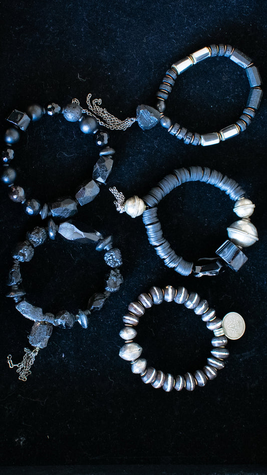Lava and Silver Bead Bracelet