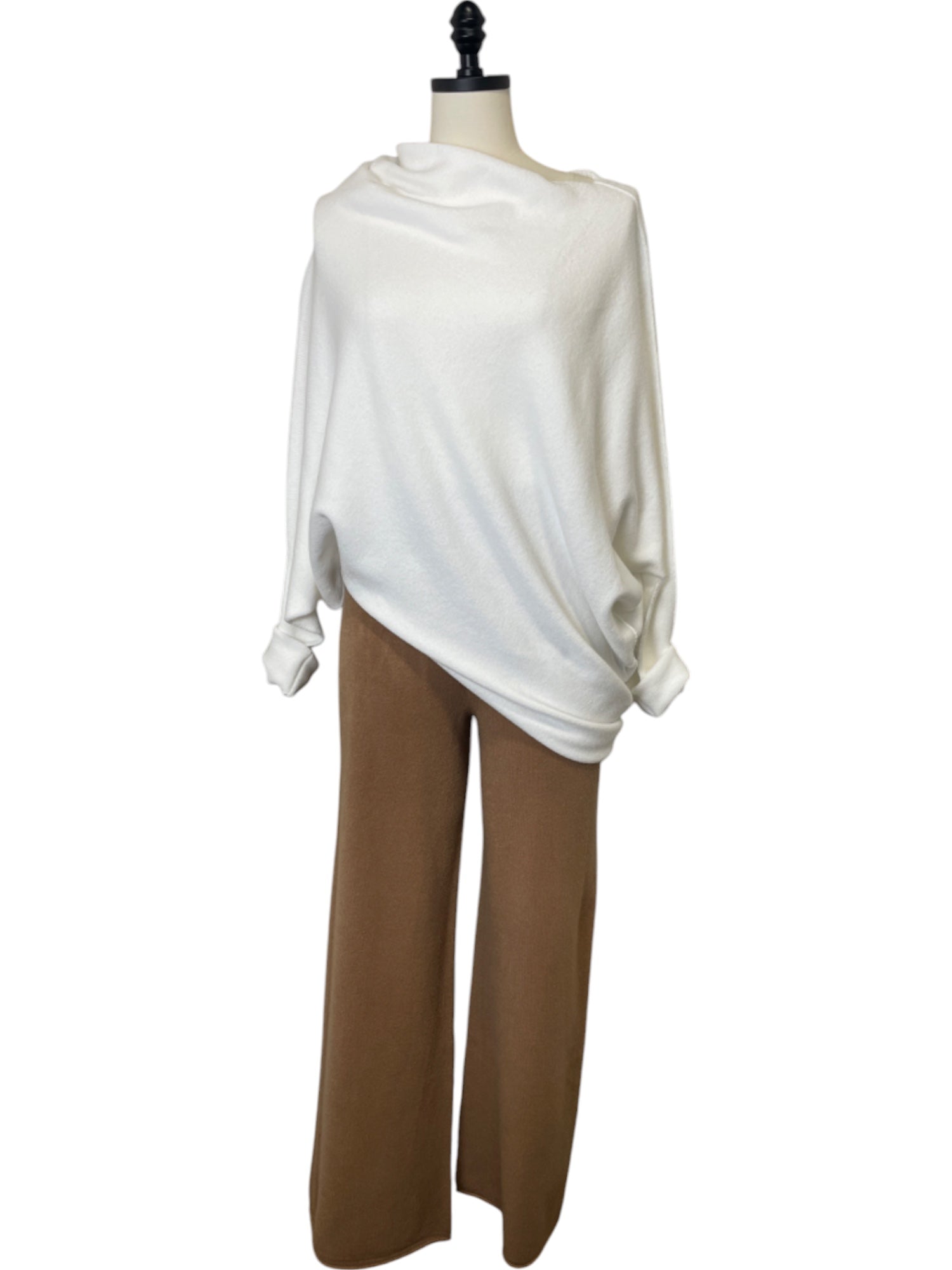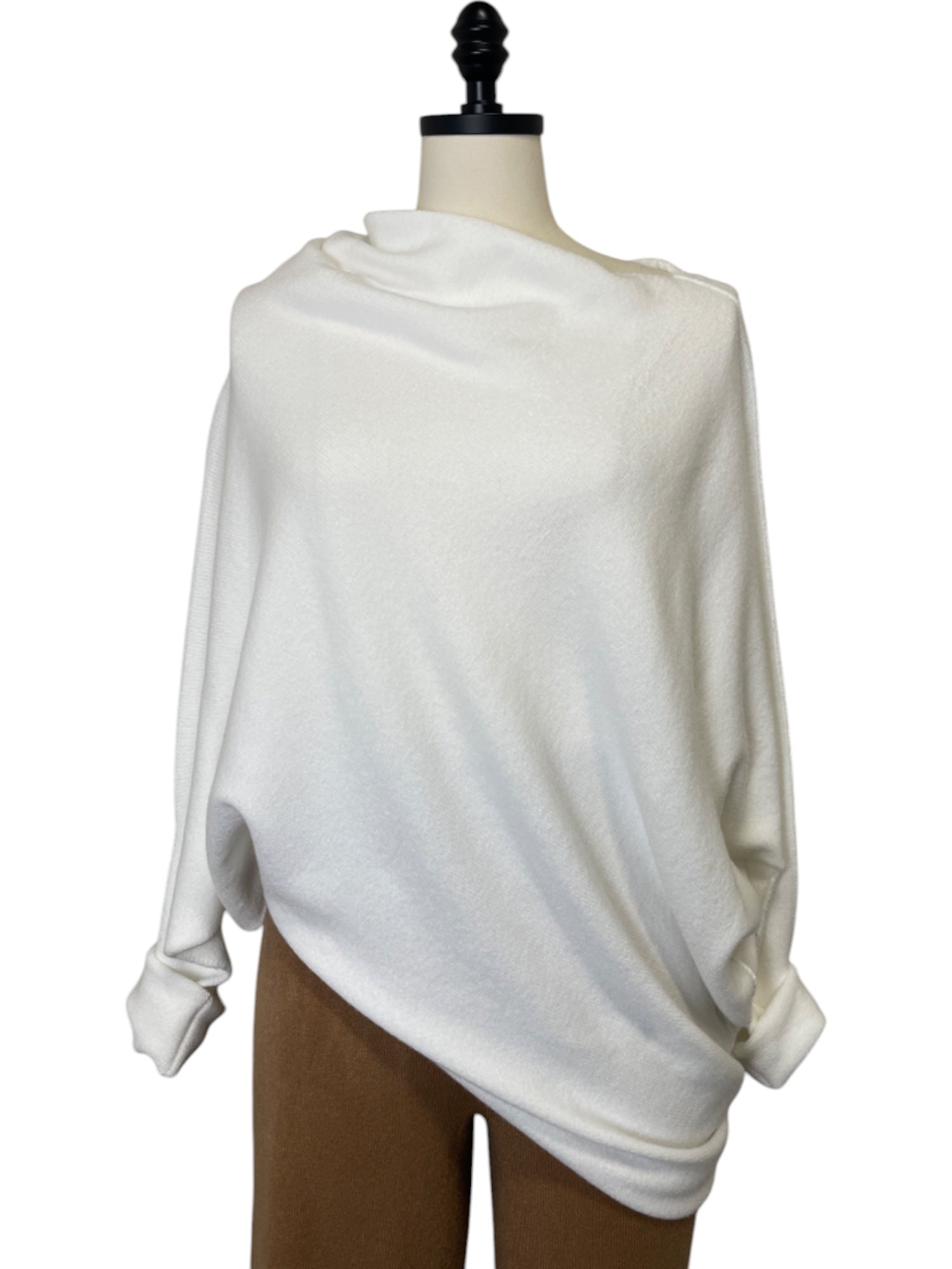 - Asymmetrical drop shoulder sweater