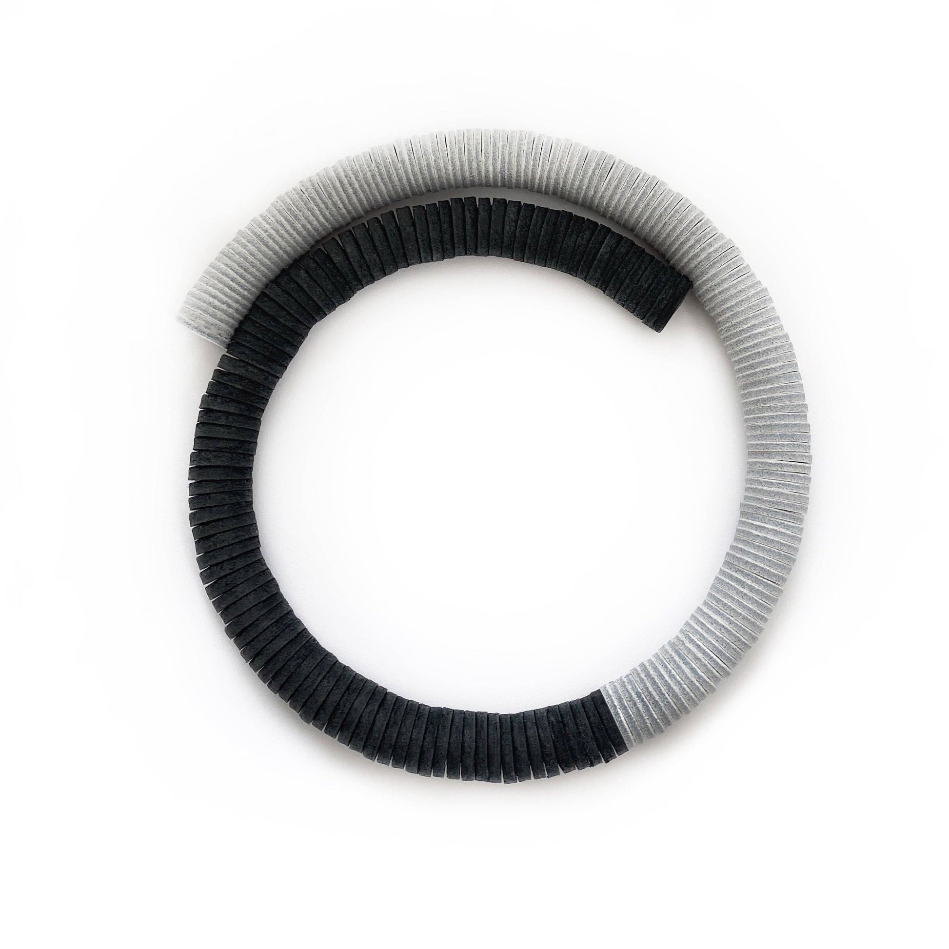 Embrace the power of your opposites with our stunning leather necklace by WAIWAI. This piece symbolizes the synergy of contrasts, representing both your light and dark, vulnerability and warrior, feminine and masculine. Made from individually punched genuine leather sequins and stainless steel memory wire, this choker is the softest, lightest, and most comfortable choker you will ever wear. It flexes easily to put on and adjusts to neck size, with absolutely no resistance against your neck, allowing you to forget its presence. With no clasp, this choker can be worn with the opening at the front. Shop now and embrace the whole with this powerful accessory.