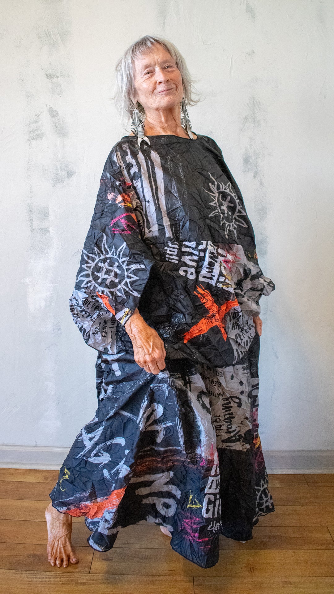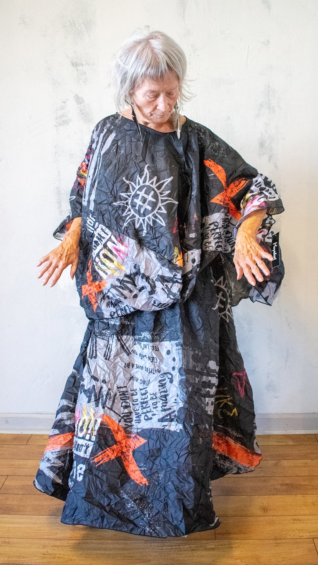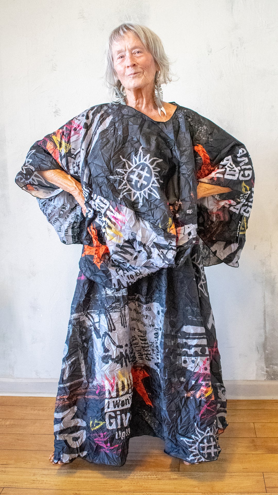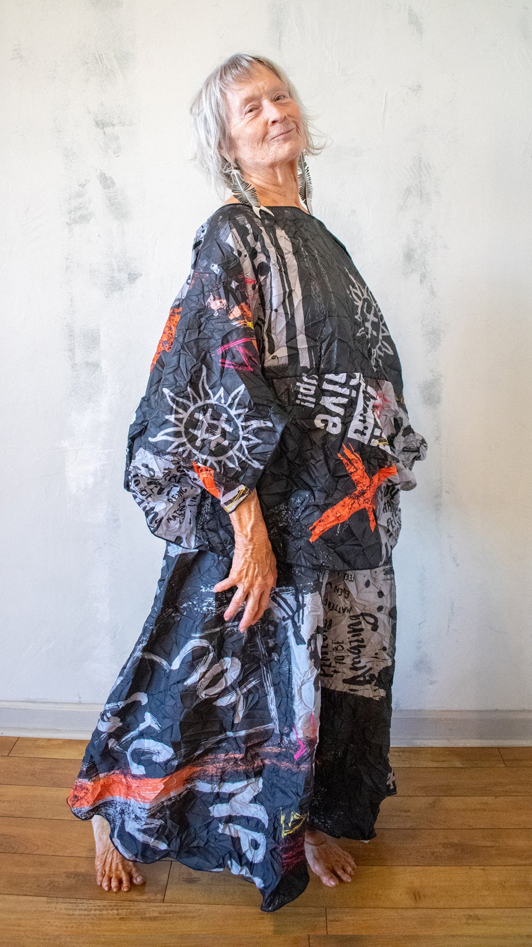 A deeper, more dramatic take on the Pillow Top, this version leans into contrast and boldness. The crinkled texture and graphic print create a layered visual effect—structured yet fluid, expressive yet wearable.