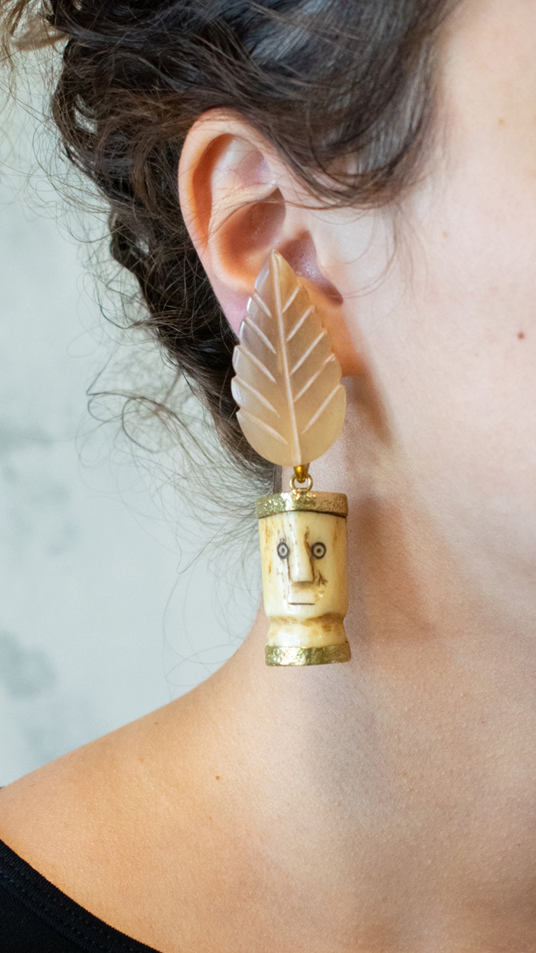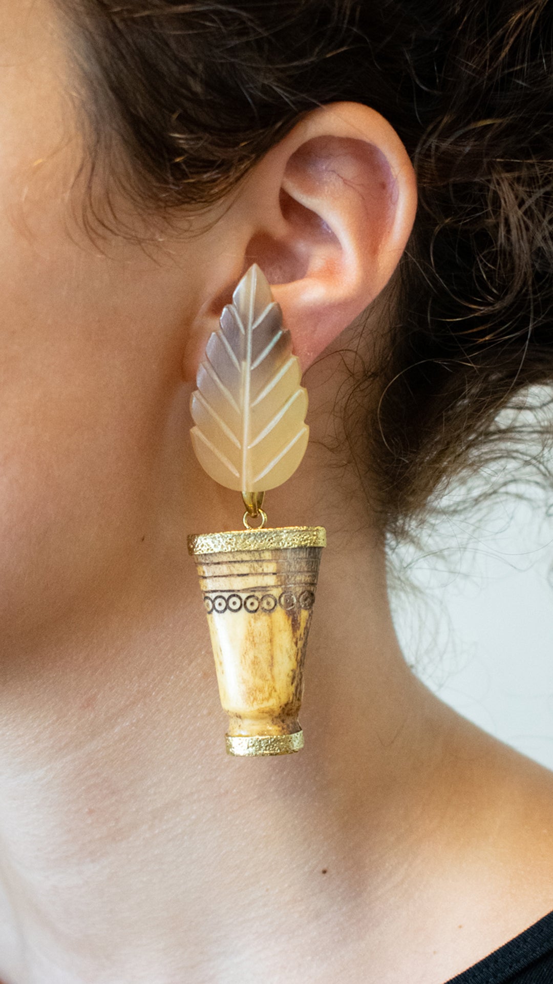 E7-Buffalo horn leaves with hand carved bone capped with brass setting
