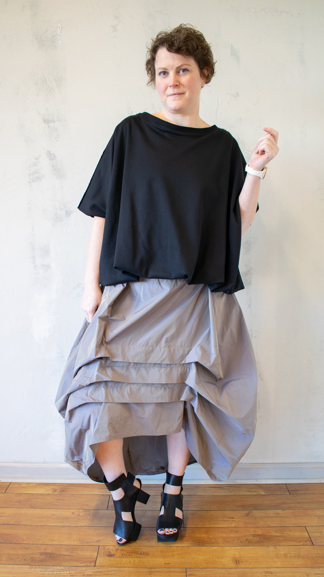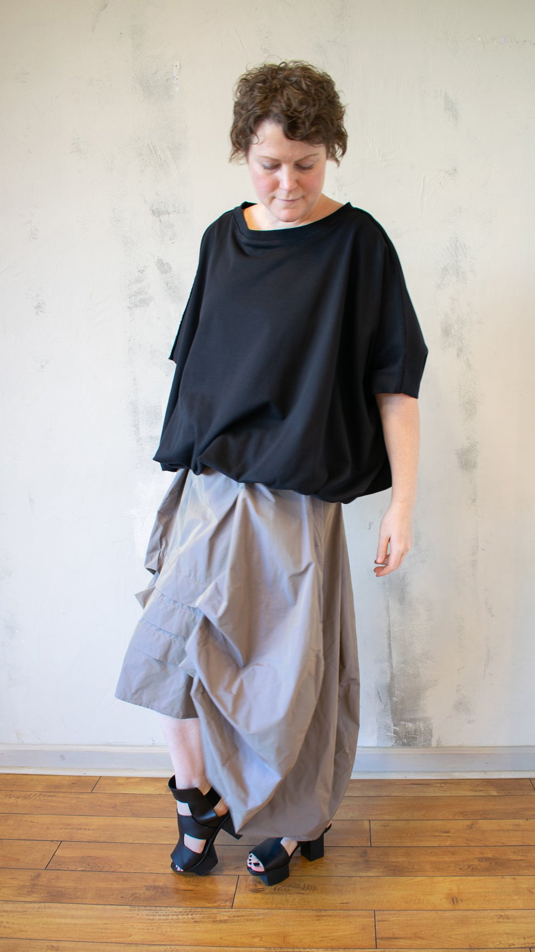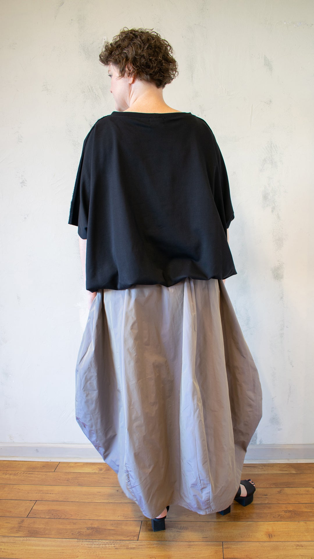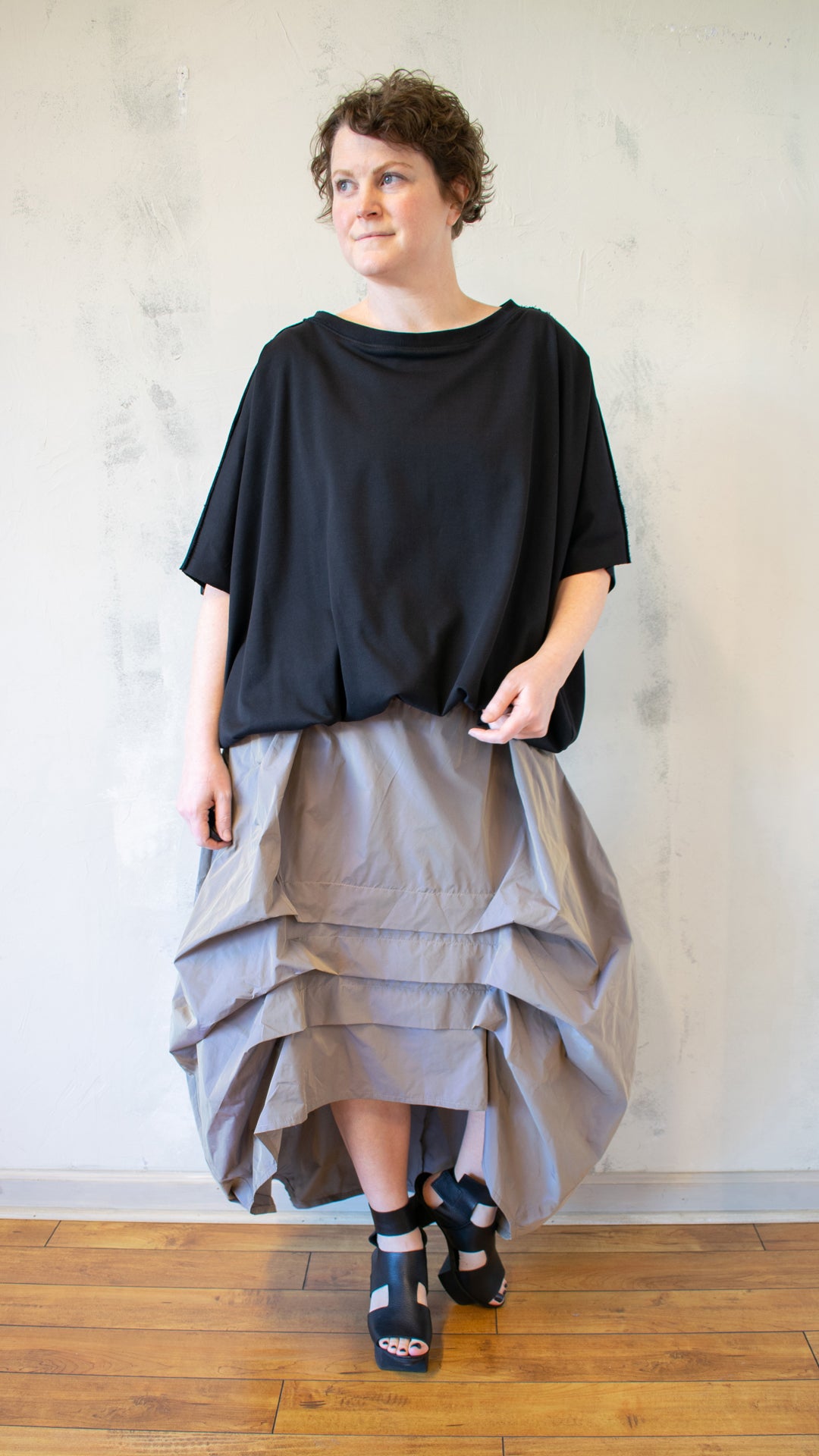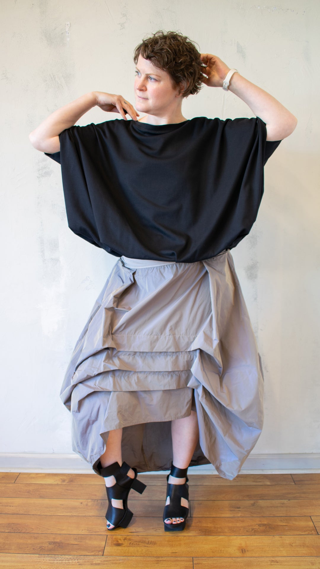 Equally striking on its own or layered, this top pairs beautifully with structured skirts or relaxed pants. An easy piece that feels intentional from every angle.