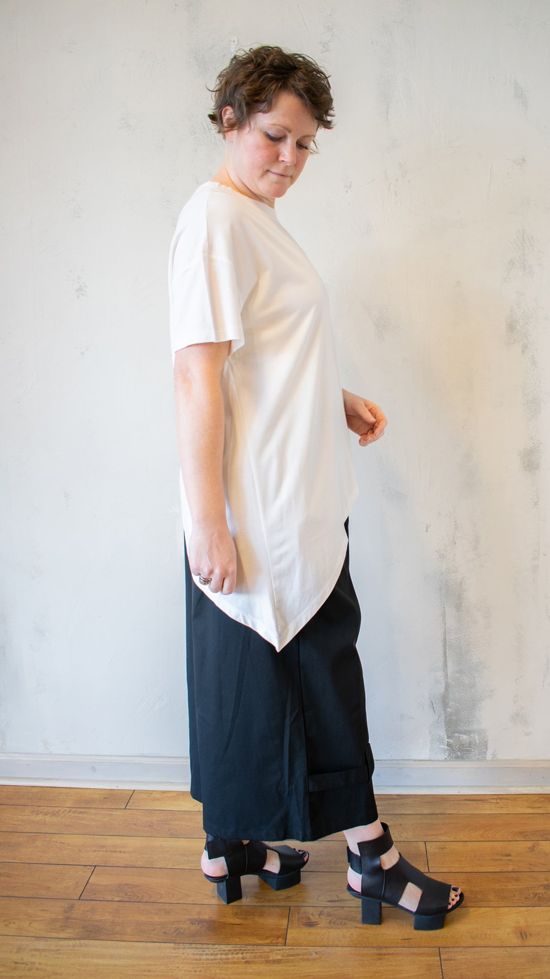 The subtle imbalance of the hemline adds movement and visual interest without overpowering, making this a piece that feels special while remaining endlessly versatile.