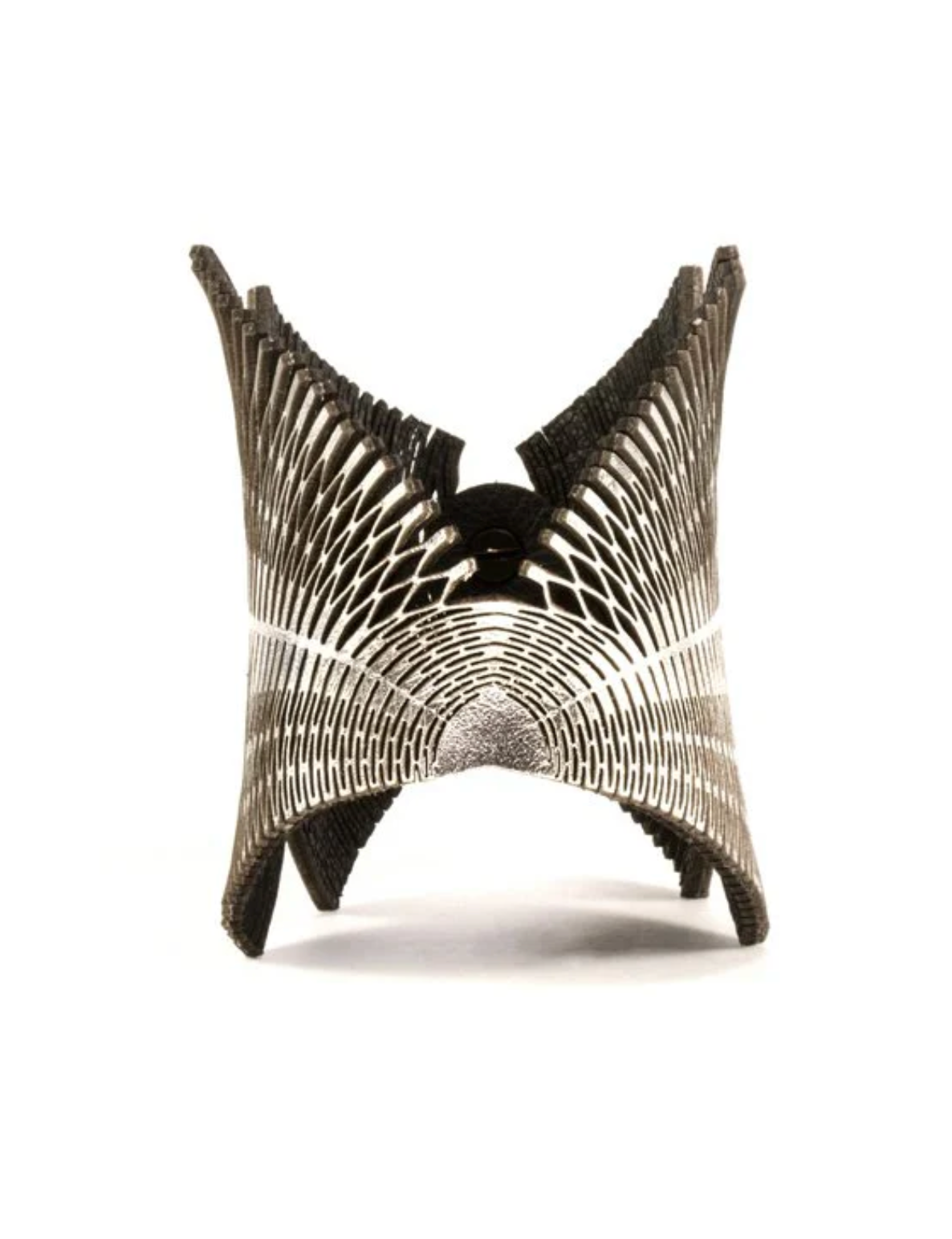 To explain wave phenomenon, Abbott adapted photogram techniques she had learned as Man Ray’s assistant in the 1920s. Combining a glass-bottomed ripple tank with an overhead flash, she projected shadows of oscillating waves onto unexposed photographic paper. The strong graphic black-and-white lines in Wave Pattern with Glass Plate lucidly reveal how energy pulses through water.