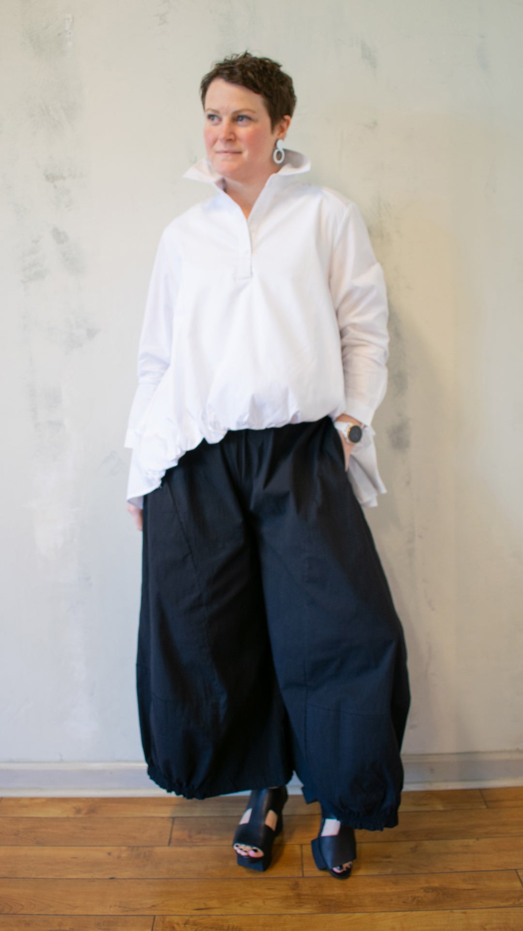 - Gathered front hem