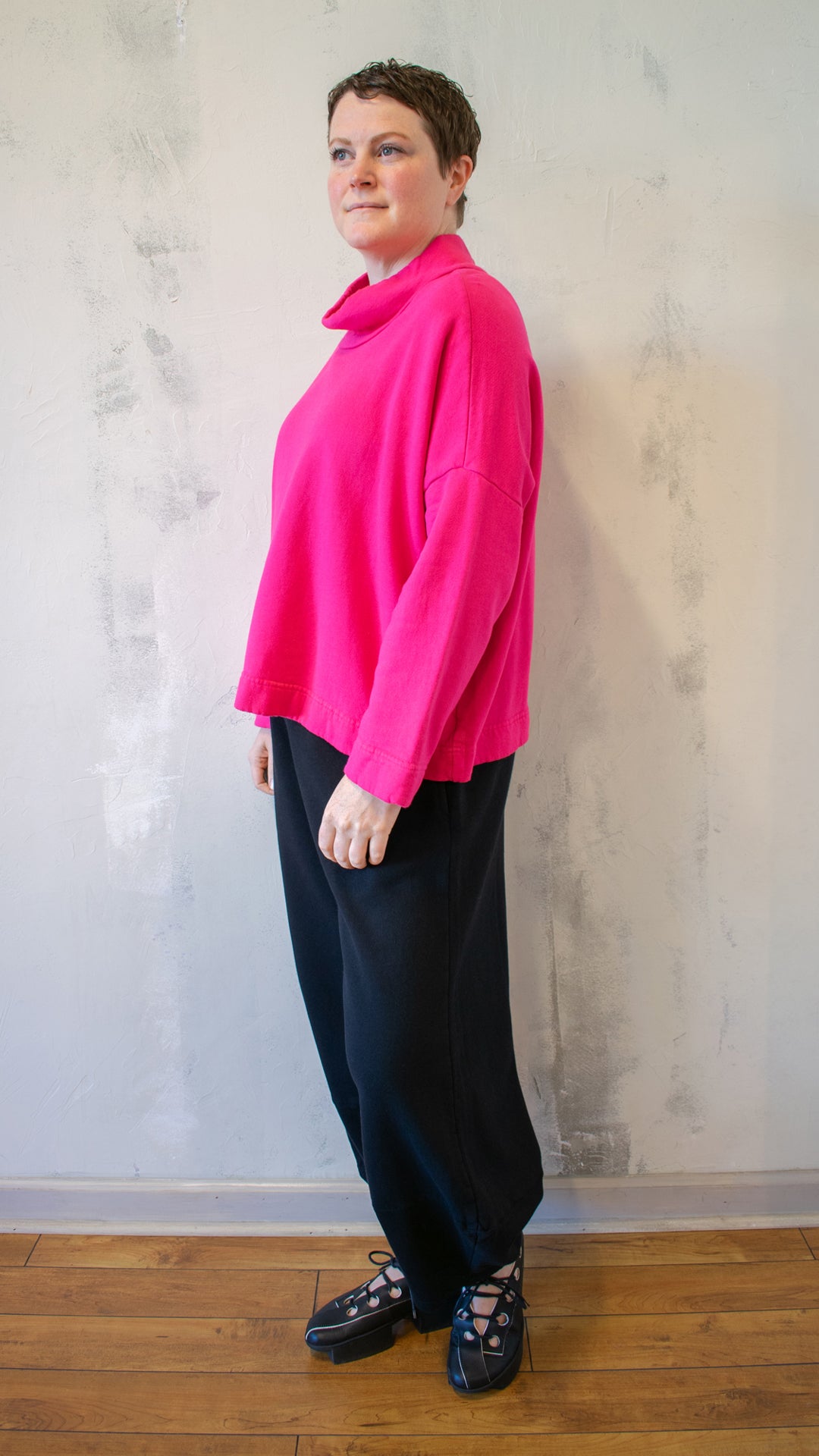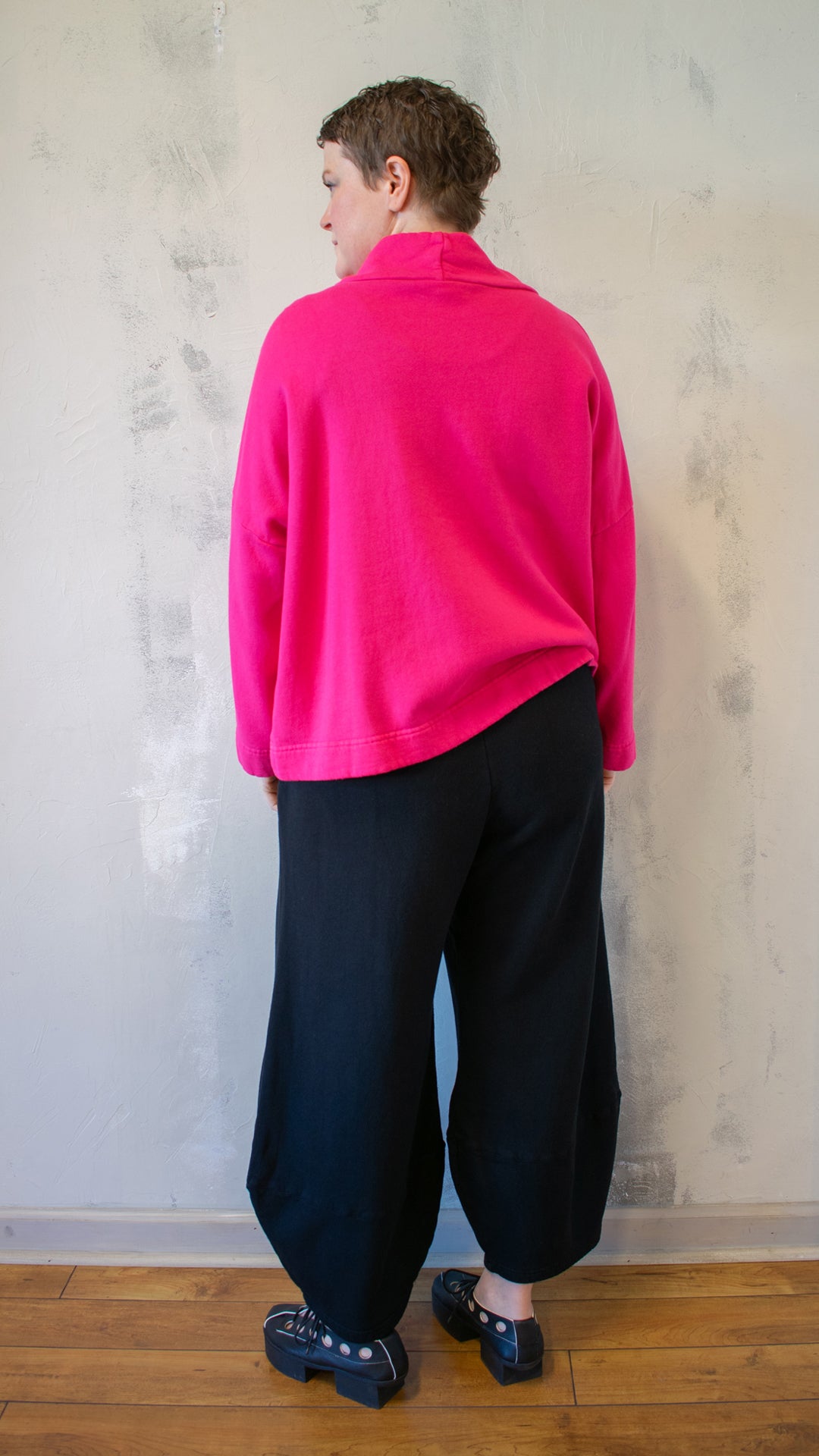 The Stowe Shirt combines plush bamboo-cotton fleece with an easy, architectural silhouette. A slouchy mock neck, dropped shoulders, and wide hemline give it an artful drape that’s both cozy and refined. The cropped shape layers beautifully — a season-long favorite for effortless sophistication.