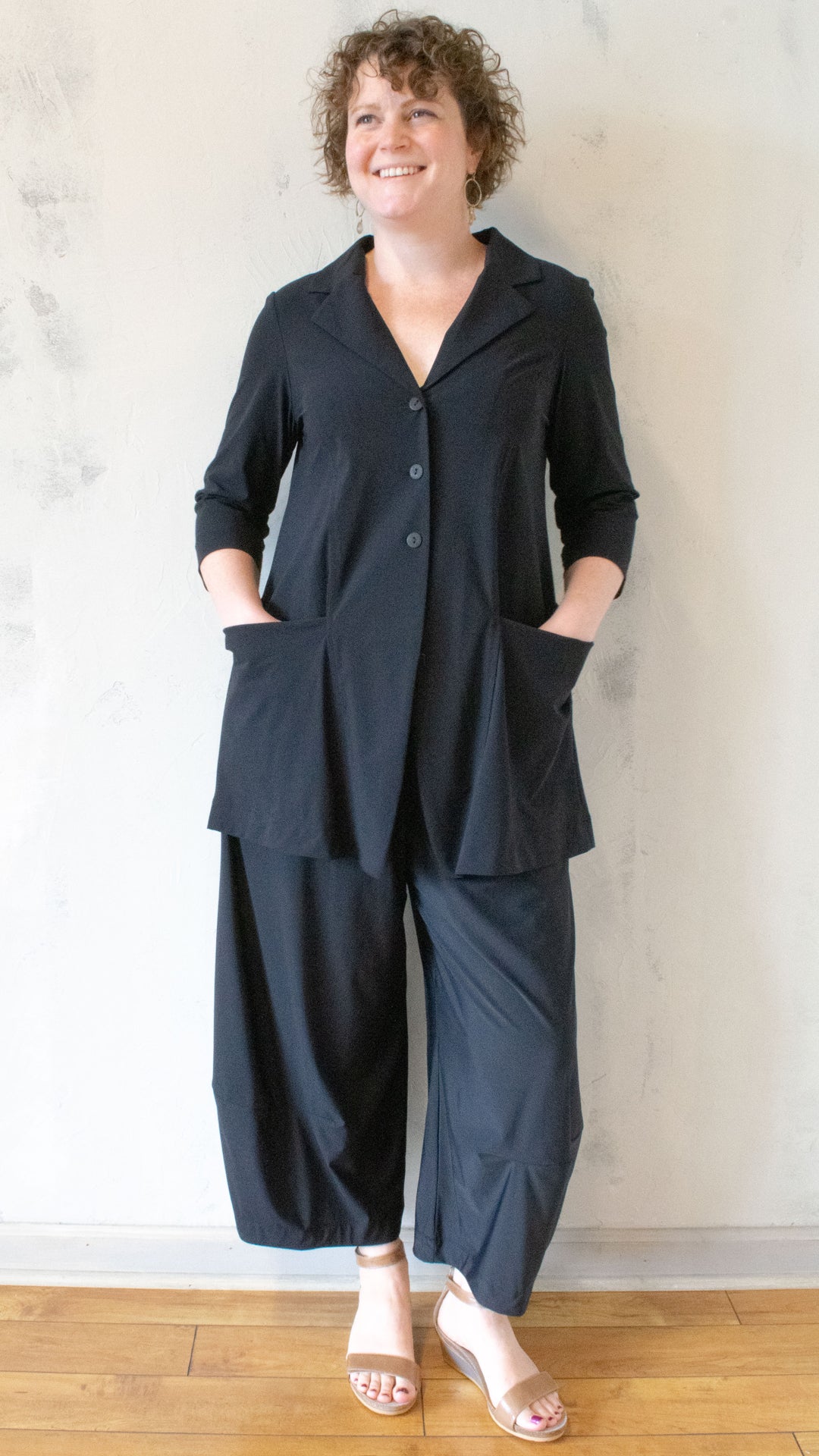 This lightweight layer is sure to be your next closet go-to–it has an easy, relaxed fit, making it great to pair with a sleeveless top or blouse underneath. With a foldover collar, full button placket, three quarter length sleeves, and draped front pockets, it can be dressed up or down, making it a great option for travel. Made in a lightweight, sweat-wicking TECHNO that breathes and moves with you. You can't go wrong!